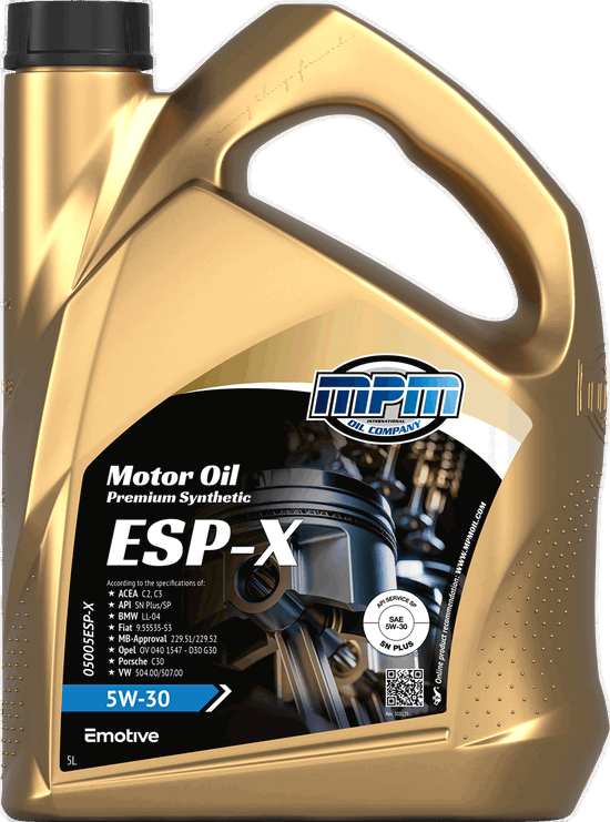 This premium synthetic ESP-X SAE 5W-30 fuel-saving engine oil has been specially formulated to meet the latest gasoline and diesel engine requirements for passenger cars, vans and SUVs.