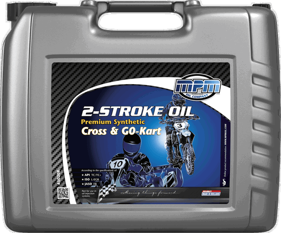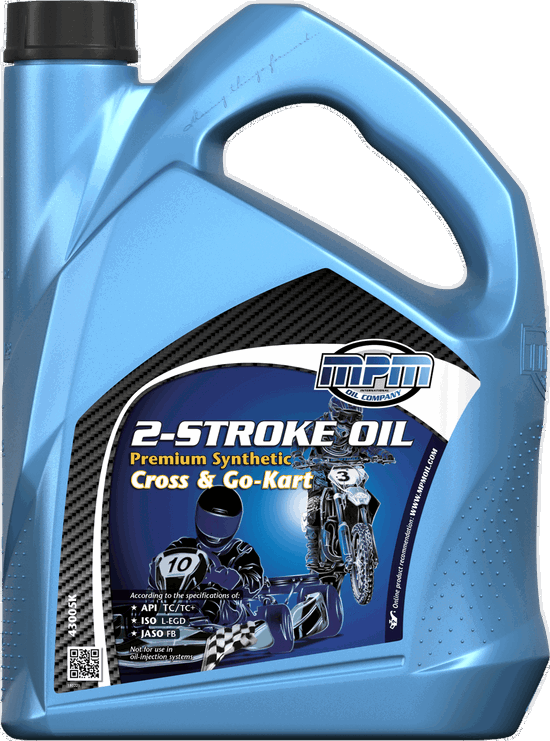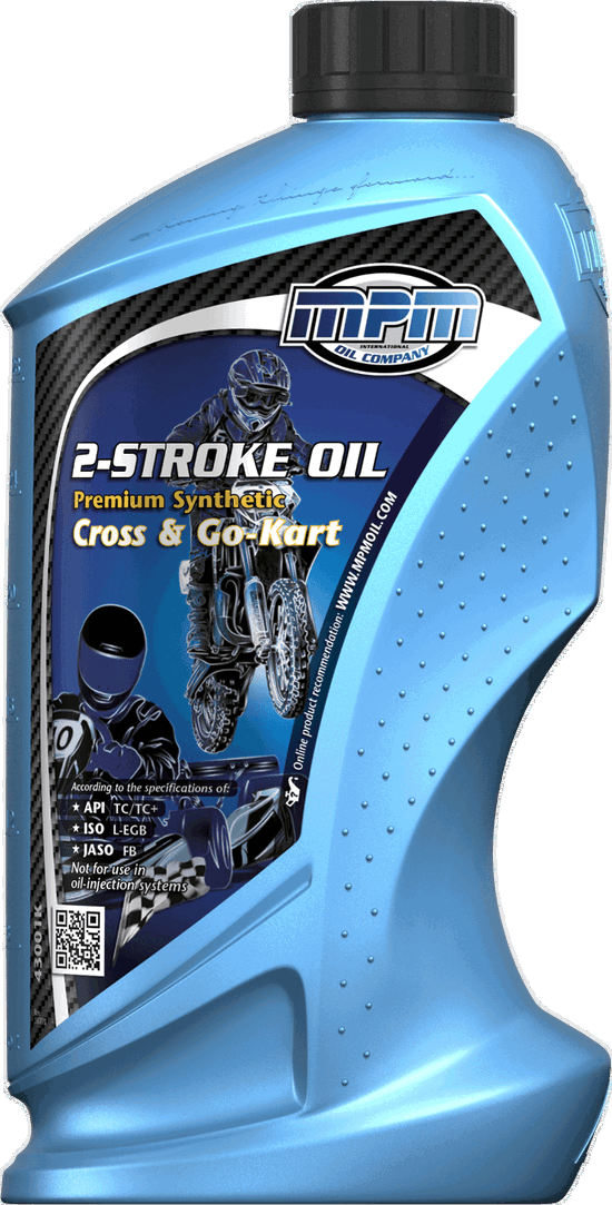 MPM 2-Stroke Oil Premium Synthetic is suitable, specially developed and recommend, for use in air- or water-cooled 2-stroke competition engines. This oil is only suitable where pre-mixed lubrication into the fuel is required for 2-stroke engines applied for Motocross, Enduro, Quad, Trail and Go-kart. The high performance of this 100% synthetic oil provides excellent protection against wear in the engine, crank and pistons, in racing conditions.