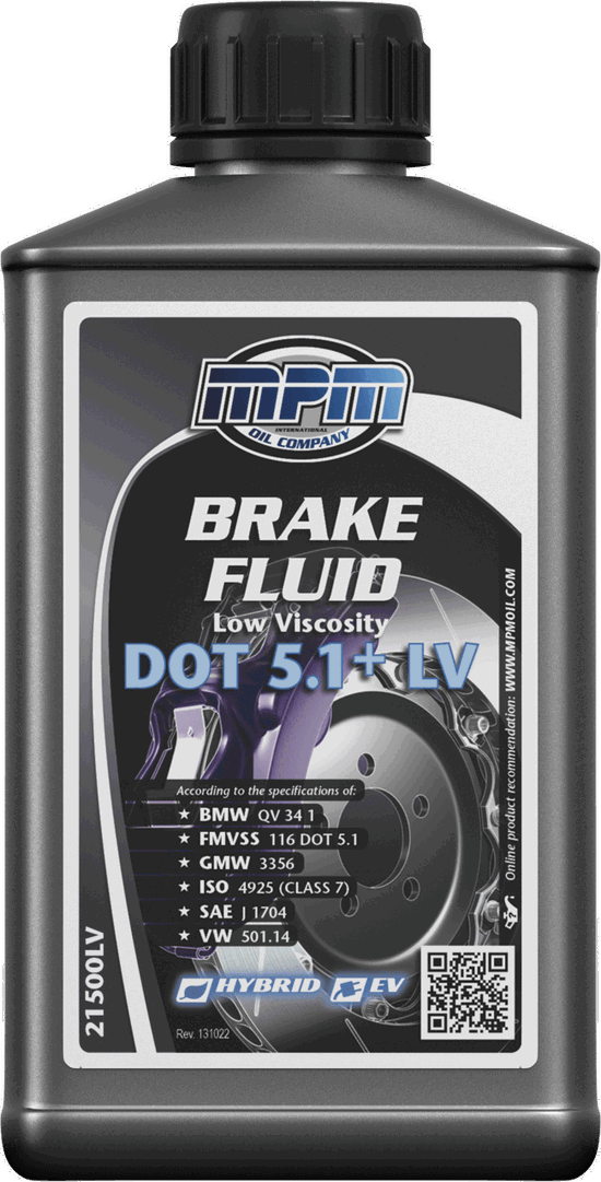 This synthetic DOT 5.1+ LV brake fluid has been specially developed for use in all hydraulic brake and clutch systems of electric and hybrid vehicles, where DOT 5.1+ LV, ISO 4925 Class 6 or 7 brake fluid is recommended by OEMs. The properties of this high quality product ensures lower electrical conductivity. Due to the low viscosity, this brake fluid is globally applicable and also suitable for modern ESP and ABS systems. This brake fluid is backwards compatible with DOT 4, DOT 4+ LV or DOT 5.1.