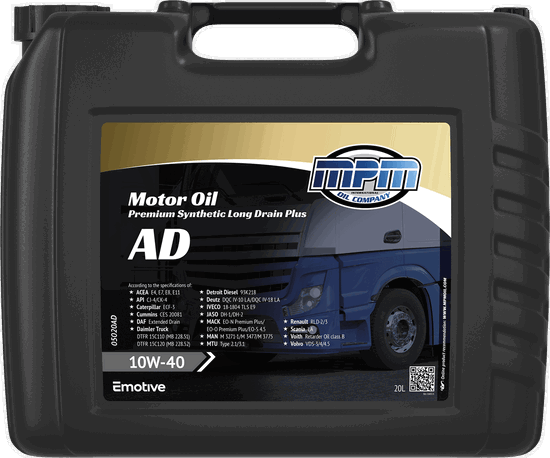 This Motor Oil 10W-40 Premium Synthetic Long Drain Plus is a fully synthetic engine oil specially developed for the high demands of engine manufacturers of heavy duty truck construction and marine engines that operate under the most extreme operating conditions. This high performance engine oil is developed for Euro 5 and Euro 6 Diesel engines but also suitable for Euro 2, Euro 3, Euro 4 Diesel- and CNG engines and recommended for heavy duty trucks with exhaust after treatment systems, such as DPF, EGR and SCR, and for the use of low Sulphur (<50 ppm) diesel fuel. This motor oil is highly suitable for extended drain intervals.
