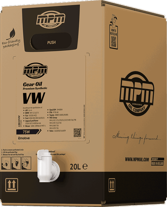This premium synthetic SAE 75W VW FE transmission oil has been developed for use in VW manual transmissions, among others, and for those applications for which manufacturers require a SAE 75W GL-4 specification.
